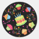 Sticker Rond Cupcakes et gâteaux noirs Joyeux anniversaire