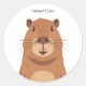 Une illustration charmante d'un capybara qui regarde droit devant avec une expression calme et douce. L’image présente les caractéristiques uniques du capybara, notamment son visage rond, ses yeux expressifs et ses chuchotements distinctifs. Le style minimaliste et les tons terreux ajoutent à son aspect attachant, ce qui en fait un visuel attrayant pour les amoureux des animaux.