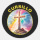Sticker Rond Cursillo Wood Cross With Rainbow and Clouds