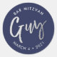 Sticker Rond CUSTOM Bar Mitzvah marine moderne nom argenté GUY