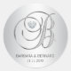 Sticker Rond Custom Elegant Silver Monogrammed Letter B Wedding