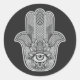 An orchestration of geometric shapes in black and white, weaving the protection and harmony of the mystical Hamsa.
