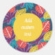 Custom text on tropical floral sticker with fruits, strawberries, leaves. Fun, happy, colorful, green, yellow modern sticker for packaging, business, bags, or for women birthday, girl' s party. For women, mothers, adults who love tropical islands, travel, hawaii, Personalized sticker with text, name, information , message