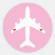 Sticker Rond Cute Airplane Hearts Girl Pilot Rose Personalisé