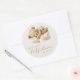 Ces stickers de baby shower mignon sont munis d'un ours en peluche couleur marron sucré dormant sur un nuage au-dessus des mots "baby shower" dans le script d'écriture brun. Personnalisez le texte avec le nom de la maman-to-be et la date en police marron clair sans serif sur un arrière - plan beige.