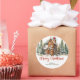Sticker Rond Cute aquarelle pain d'épices maison forêt d'hiver
