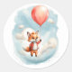 Sticker Rond Cute Aquarelle Petit Fox Grand Balloon rouge