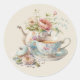 Sticker Rond Cute Aquarelle Teapot avec Bouquet Floral Classic