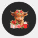 Sticker Rond Cute Baby Highland Cow Merry Christmas Farmer Cow