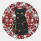 Sticker Rond Cute black cat Meowy Christmas sparkling snowflake