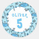 Beau Crabe Bleu Animaux de mer Sticker d'anniversaire. Cette conception est accompagnée de dessins d'animaux de mer bleus mignons. Ajoutez votre nom et votre âge.