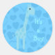 Sticker Rond Cute Blue Giraffe & Coeurs C'Est Un Garçon Nouveau