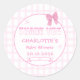 Sticker Rond Cute Bow Pastel Rose En vichy Baby shower Merci