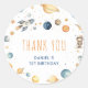 Sticker rond classique pour la fête d'anniversaire de l'espace astronaute garçon mignon. Éléments correspondants disponibles.