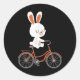 Sticker Rond Cute Bunny On Bike Rabbit Cycling Bicycle Bunny
