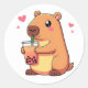 Sticker Rond Cute Capybara Boire Boba Bubble Tea Femmes Filles