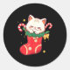 Sticker Rond Cute Cat In Christmas Stocking Kawaii Anime Xmas G