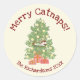 Sticker Rond Cute Chat sur Chistmas Tree Joyeux Catnaps!