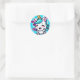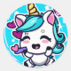 Sticker Rond Cute Chibi Kawaii Unicorn Coeurs bleu rose