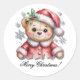 Sticker Rond Cute Christmas Bear and Snowflakes