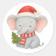 Sticker Rond Cute Christmas Elephant with Santa Hat