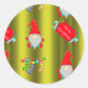 Un autocollant de Noël très mignon avec des elfes de Noël (ou des gnomes) sur eux, avec des bas de Noël colorés et des signes qui souhaitent à chacun un joyeux Noël, le tout sur un arrière - plan vert chartreuse coloré.