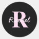 Sticker Rond Cute Customizable Monogram | Light Pink & Black