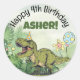 Sticker Rond Cute Dinosaur Thème Enfants Nom Anniversaire Fête
