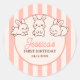 Sticker Rond Cute Easter Bunnies Pink Girl 1st Birthday Party