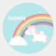 Sticker Rond Cute Flying Unicorn Rainbow Personnalisé