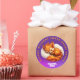 Celebrate the arrival of your little lady with these stickers, which feature an illustration-style image of an adorable young fox cub with golden, flame-like fur, dreaming happily in the starry night skies. Customize with baby's name, date of birth (or event date), and even the background color.