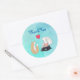 Un autocollant de remerciement avec une adorable illustration. Un dessin de dessin animé mignon et fantaisiste avec un renard et un lapin assis ensemble, traîner dehors. Le lapin blanc a des shorts de couleur pêche et est assis sur un rondin couvert de champignon. Le renard brun regarde son ami de lapin à longues oreilles. Un coeur rouge avec une bordure noire plane au-dessus de leur tête. L'arrière - plan est une texture bleu turquoise avec des stries de pinceau. Le texte peut être customisé / personnalisé pour dire ce que vous voulez.