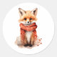 Sticker Rond Cute Fox Pup in a Red Scarf