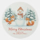 Sticker Rond Cute Foxes and Snowman Merry Christmas