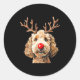 Sticker Rond Cute Funny Reindeer Santa Goldendoodle Christmas T
