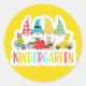 Sticker Rond Cute gnomes école maternelle bus globe books