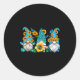 Sticker Rond Cute Gnomes With Sunflower Butterfly Gardeners Sum