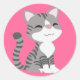 Sticker Rond Cute Gris Souriant Tabby Chat