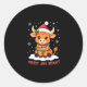 Sticker Rond Cute Highland Baby Cow Christmas Lights Merry & Br