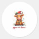 Sticker Rond Cute Highland Baby Cow Christmas Lights Merry & Br