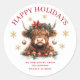 This sweet highland cow is decorated for the holidays and is sure to add a festive touch to your business Christmas celebrations. "Happy Holidays" is printed above, with your company information below. All text can be edited and changed as you wish. Perfect for adding a touch of whimsy and rustic charm, this sticker is sure to bring a smile to clients, employees and anyone on your list. Happy Holidays!