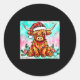 Sticker Rond Cute Highland Cow Christmas Lights Merry Xmas Cows