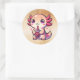 Sticker Rond Cute Kawaii Axolotl avec thé à bulle