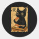 Sticker Rond Cute Kawaii Chat Noir Manger Sushi Drôle Japonais