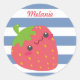 Sticker Rond Cute Kawaii fraise rayée personnalisée