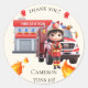 Sticker Rond Cute Kawaii Pompier Girl et Camion d'incendie