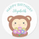 Cute Kawaii Singe Avec Fleurs Joyeux Sticker Rond Anniversaire Classique