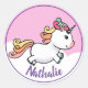 Collier pastel avec nom, avec une mignonne licorne chubby sur un nuage.
