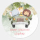 Sticker Rond Cute lion race car Safari jungle Anniversaire fête