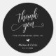 Modern Wedding Minimalist Thank You Gifts Classic favor Round Sticker, in classy script, cute little heart, with bride and groom name and wedding date, in black and white theme.